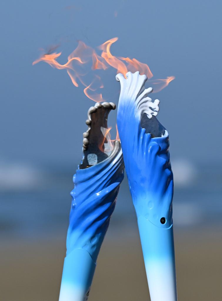 滿滿的科技感是本屆運動會的一大亮點。在此前進行的采火儀式上,以可燃冰作為燃料的火炬科技感拉滿,大放異彩?!疤剿鞫枴笨瓶即瑸楸緦眠\動會采集的可燃冰,由潛航員通過保壓取樣器采集并帶回陸地。火炬設(shè)計團隊表示,這象征科技的力量,也寓意海南自貿(mào)港發(fā)展的無限潛力。