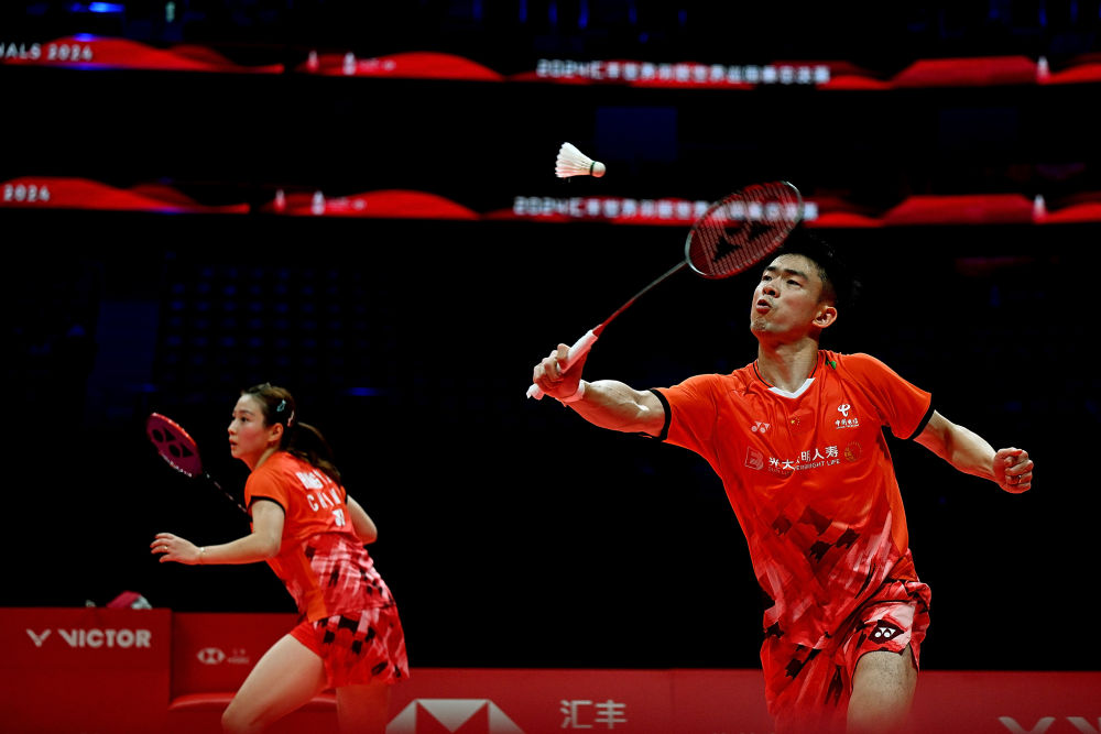 12月12日,鄭思維(右)/黃雅瓊在比賽中。新華社記者 侯昭康 攝