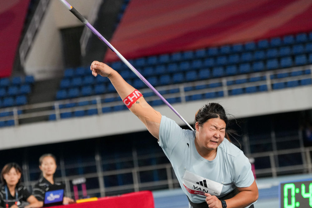 9月7日,中國選手嚴(yán)子怡在女子標(biāo)槍比賽中。新華社記者 鞠煥宗 攝