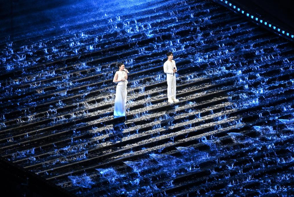11月9日,歌手周深(右)和單依純?cè)陂_(kāi)幕式現(xiàn)場(chǎng)演唱。新華社記者 李鑫 攝
