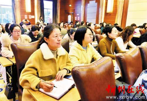 本報(bào)訊為落實(shí)推進(jìn)“家家幸福安康工程”,幫助家長系統(tǒng)學(xué)習(xí)家庭教育知識(shí),12月18日,由忻州市婦聯(lián)舉辦的家庭教育培訓(xùn)班隆重開班。市縣兩級(jí)婦聯(lián)工作人員、機(jī)關(guān)及企事業(yè)單位婦委會(huì)工作人員等200余人參加培訓(xùn)。