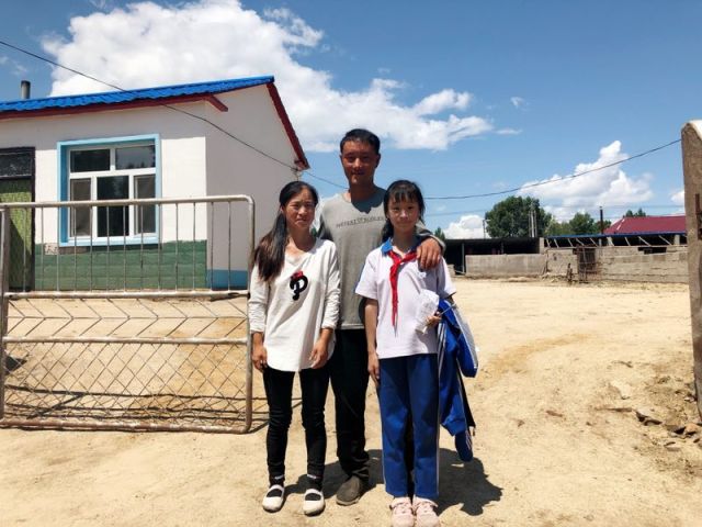 臨近中午,三年級的姑娘趙金珠放學(xué)回家,撲進(jìn)了爸爸的懷抱。記者給他們一家人合張影,趙海龍自然地伸開雙臂,緊緊地?fù)ё∑拮雍团畠?,鏡頭前三口人甜蜜微笑,一家之主趙海龍更是滿臉的自豪和幸福。
