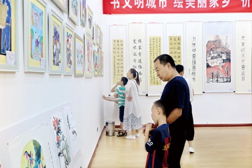 市教育局、市關(guān)心下一代工作委員會、五臺山書畫院、五臺山文化研究院、市書法家協(xié)會、市美術(shù)家協(xié)會、市硬筆書法協(xié)會、市廣播電影電視協(xié)會、黃河新聞網(wǎng)等主辦單位負(fù)責(zé)人,以及我市書畫家、學(xué)校、書畫培訓(xùn)機(jī)構(gòu)代表、參賽學(xué)生代表以及聞訊觀展的市民200余人參加了活動。300余幅充滿童趣、技法嫻熟,從不同側(cè)面抒發(fā)對祖國和家鄉(xiāng)美麗風(fēng)景的贊美,歌頌秀容大地日新月異變化的書畫作品驚艷了到場的所有人。
