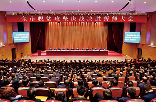 圖為全市脫貧攻堅(jiān)決戰(zhàn)決勝誓師大會會場。本報(bào)記者 劉紀(jì)森 攝