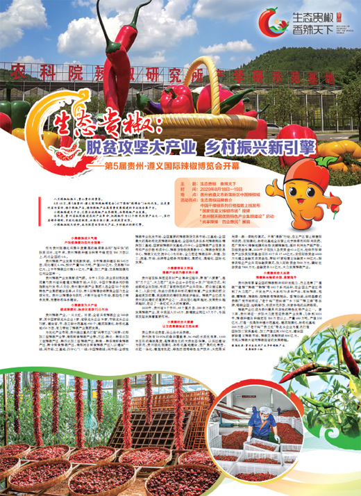 8月18日,第5屆貴州·遵義國際辣椒博覽會(huì)(以下簡稱“辣博會(huì)”)如約而至。這是貴州省為宣傳、推介辣椒產(chǎn)業(yè),推動(dòng)辣椒產(chǎn)業(yè)高質(zhì)量發(fā)展搭建的專業(yè)性會(huì)展平臺(tái)。