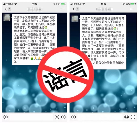 辟謠|太原公交未發(fā)布乘車使用身份證的信息