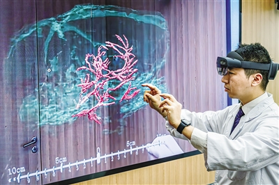 圖為科研人員展示通過混合現(xiàn)實技術(shù),微米級呈現(xiàn)腦機接口裝置與大鼠大腦主要血管和腦組織的空間位置關(guān)系。新華社記者 肖藝九 攝