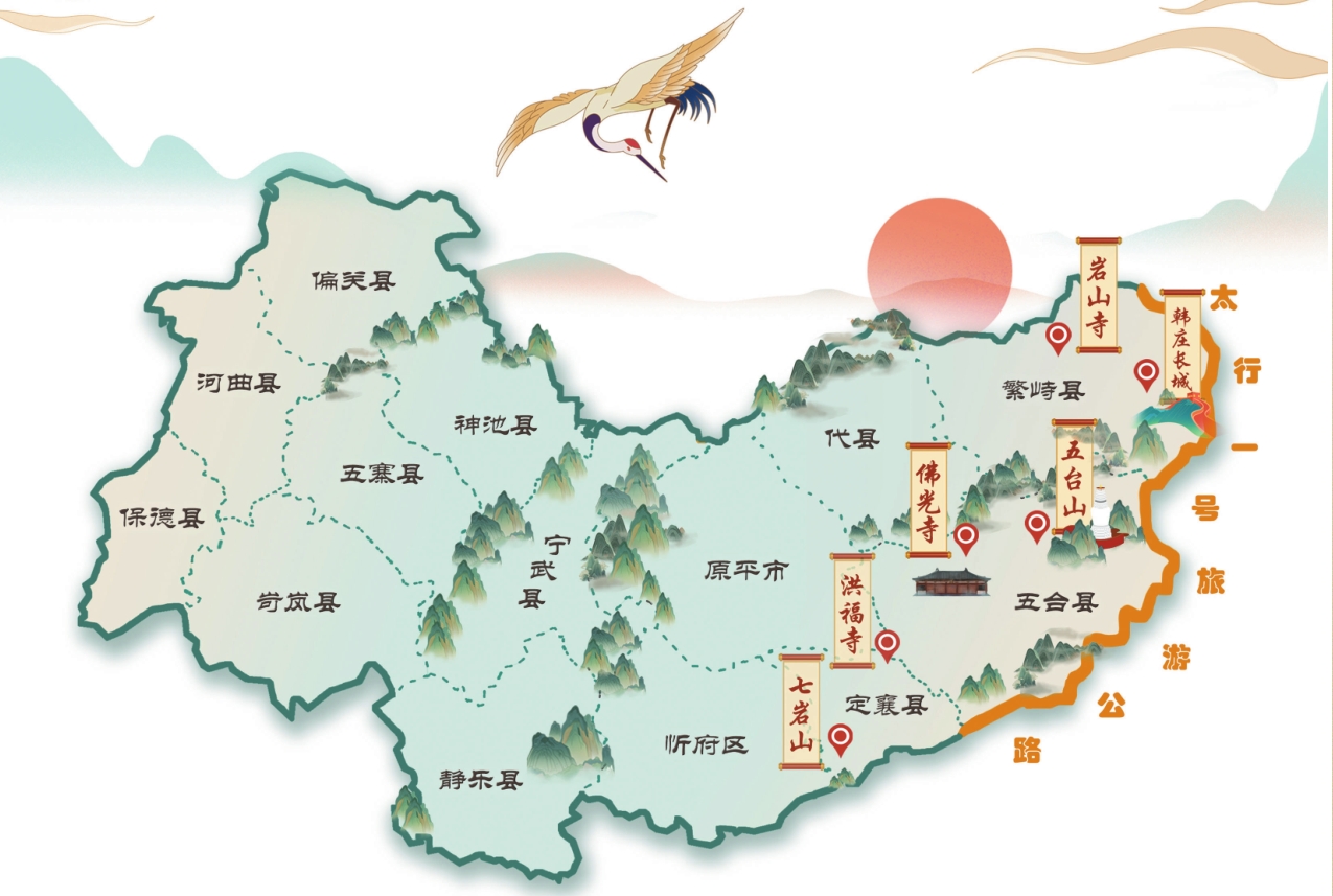 太行一號(hào)旅游公路是山西省農(nóng)村道路的重要組成部分,同時(shí)也是打造黃河、長(zhǎng)城、太行三大旅游板塊,推進(jìn)鄉(xiāng)村振興的戰(zhàn)略性基礎(chǔ)性工程。沿途貫穿忻州、太原、陽泉、晉中、長(zhǎng)治、晉城6市45個(gè)縣(市、區(qū)),聯(lián)通全省122個(gè)A級(jí)以上景區(qū)、239個(gè)非A級(jí)旅游資源(點(diǎn)),主線已成功入選全國20條“行在鄉(xiāng)村,游在路上”的最美自駕精品路線。旅游公路忻州段起點(diǎn)位于五臺(tái)縣韓家樓村,途經(jīng)五臺(tái)山風(fēng)景區(qū),終點(diǎn)與繁峙縣平型關(guān)長(zhǎng)城一號(hào)旅游公路主線相接,全長(zhǎng)185公里。