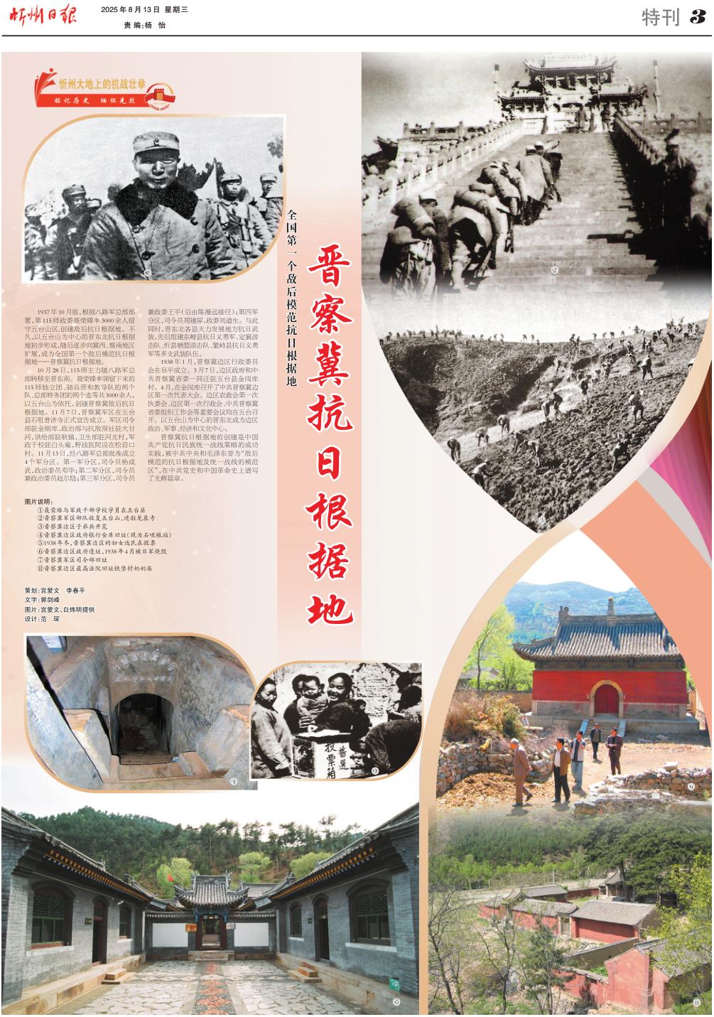1937年10月底,根據(jù)八路軍總部部署,第115師政委聶榮臻率3000余人留守五臺(tái)山區(qū),創(chuàng)建敵后抗日根據(jù)地。不久,以五臺(tái)山為中心的晉東北抗日根據(jù)地初步形成,隨后逐步向冀西、察南地區(qū)擴(kuò)展,成為全國(guó)第一個(gè)敵后模范抗日根據(jù)地——晉察冀抗日根據(jù)地。