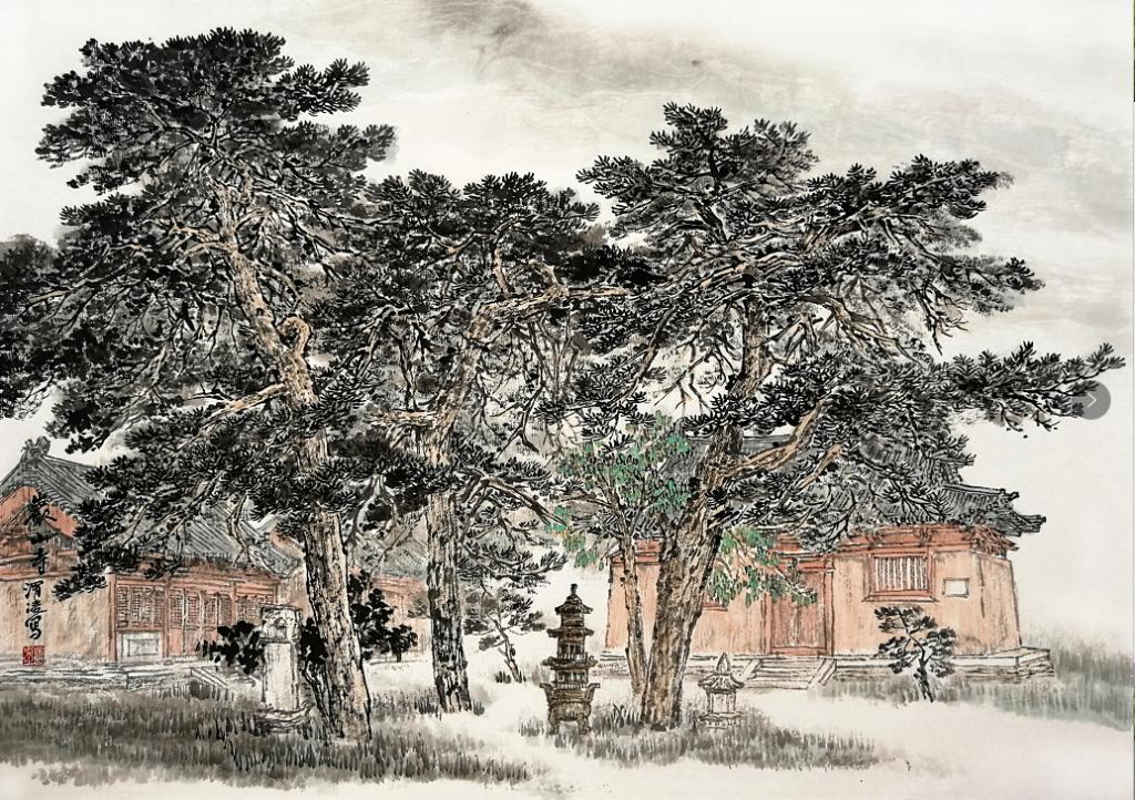 后來因為他繪畫上取得的成績,調(diào)到了忻府區(qū)文聯(lián)工作。條件好了,畫的畫更多了,畫風(fēng)依然樸實親切,給人一種視覺的舒適感。這幾年他是在一路前進的,他筆下的線條清朗有力,墨色變化也更加豐富,畫中有了渾厚華滋的氣象。細看他的畫,樸實中蘊藏著精巧,拙拙的行筆中偶露鋒厲,給畫面帶來活力生機。我們在一起寫生,他在畫面經(jīng)營上、構(gòu)圖處理上總能給人意想不到的驚喜。畫面虛實處理把握的恰到好處,又能準(zhǔn)確表現(xiàn)自然原貌的神采。于不知不覺中將自己的審美和情感融入了畫中,完成的寫生總比自然景色更加生動、更吸引人的目光,但又讓你看不出他是在哪里做了手腳。
