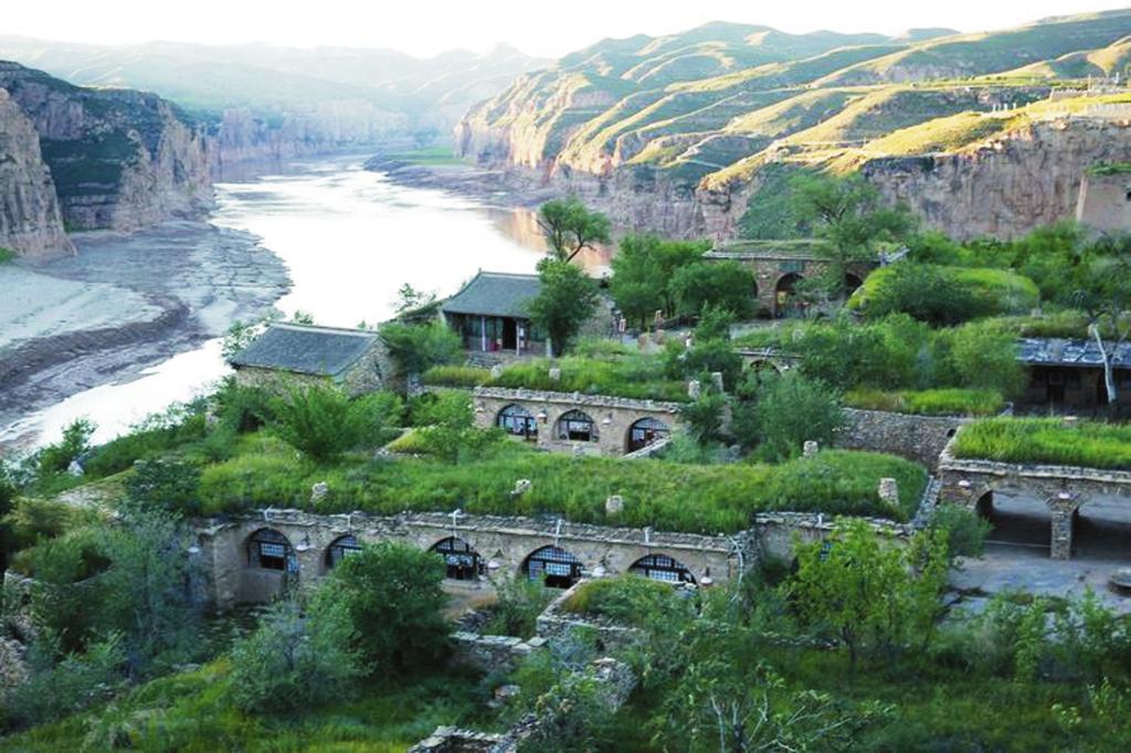 一眼望不到頭的長城從遠(yuǎn)處山梁上綿延而來直達(dá)河邊??床灰娂ち鞅加浚牪灰婞S河濤聲,清清的河水在這里悠悠徜徉盤桓。如果說長城如父親般剛強(qiáng)有力,沉雄穩(wěn)健,黃河如母親般溫柔親切,寬懷博大,那寺溝恰如父母懷中幸福溫婉的小孩。寺溝慵懶地在河邊梳洗自己的容顏,連同身邊的長城倒影在粼粼的河水中,展現(xiàn)出難得的田園詩般的浪漫與柔情。山上長城夯土保持完整,有青銅群雕,旌旗獵獵,似將軍正在縱馬出巡。登墩臺四望,視野開闊,長城下人家炊煙裊裊,雞犬相聞。峽谷中游船往來,馬達(dá)轟鳴聲中幾只野鴨貼著河面飛向不遠(yuǎn)的村子,飛向?qū)Π渡窖?。寺溝,一個把塞北風(fēng)光與江南水鄉(xiāng)有機(jī)融為一體的地方。