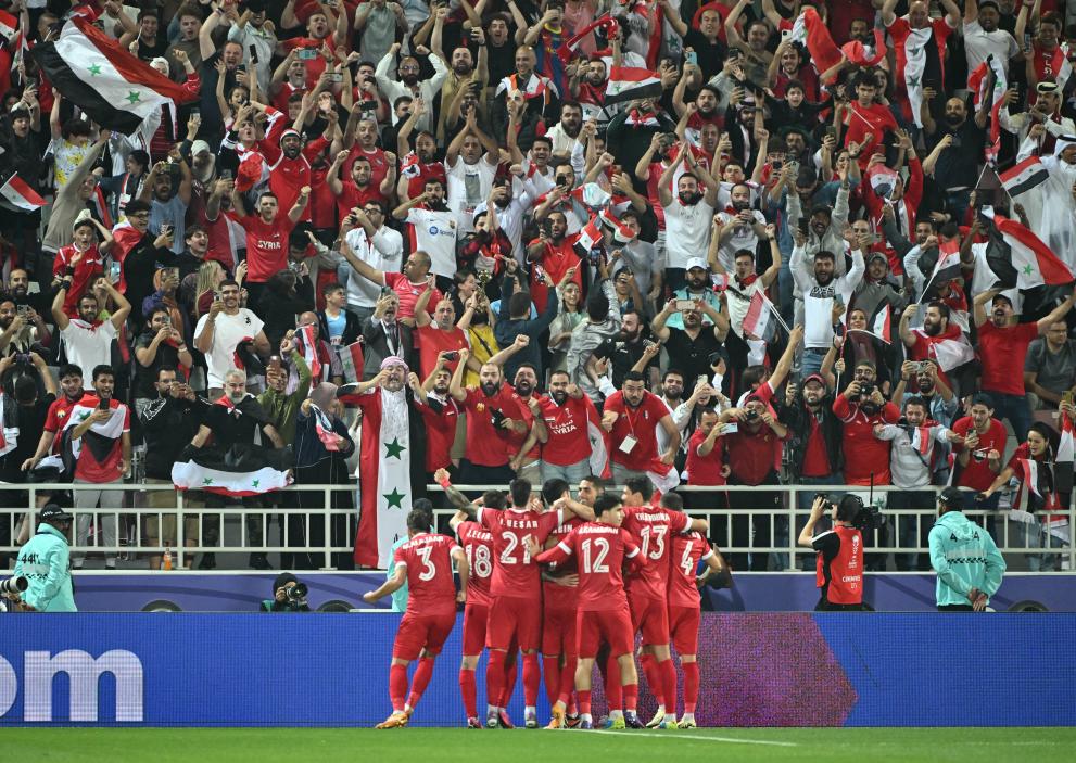 1月31日,敘利亞隊(duì)點(diǎn)球扳平比分后與球迷慶祝。新華社記者 孫凡越 攝