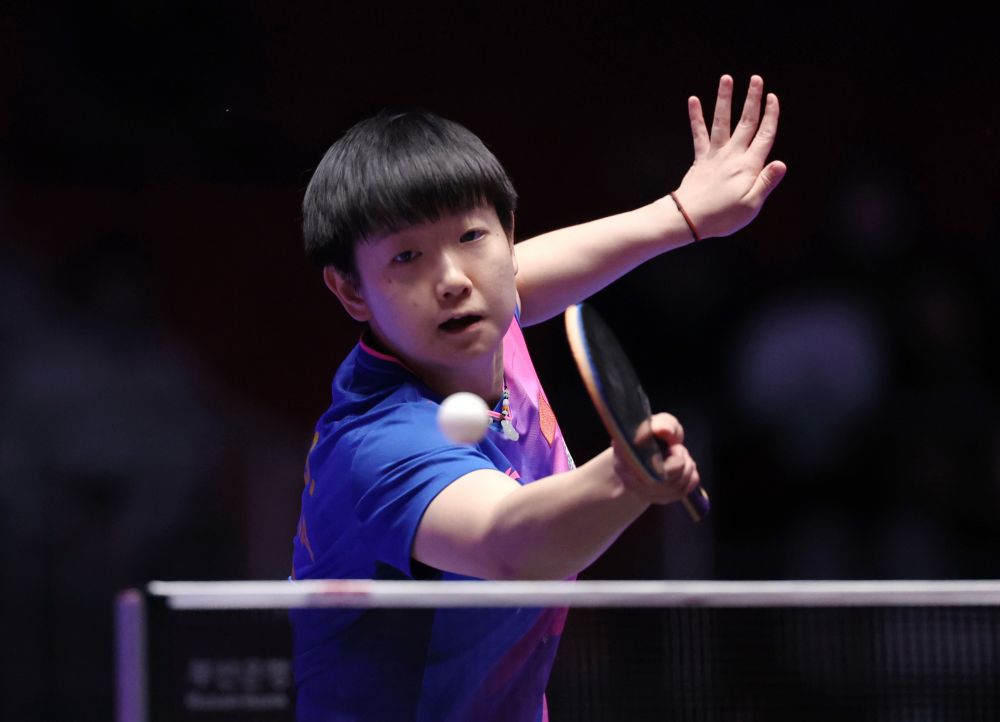 2月18日,中國(guó)隊(duì)球員孫穎莎回球。新華社記者 楊世堯 攝