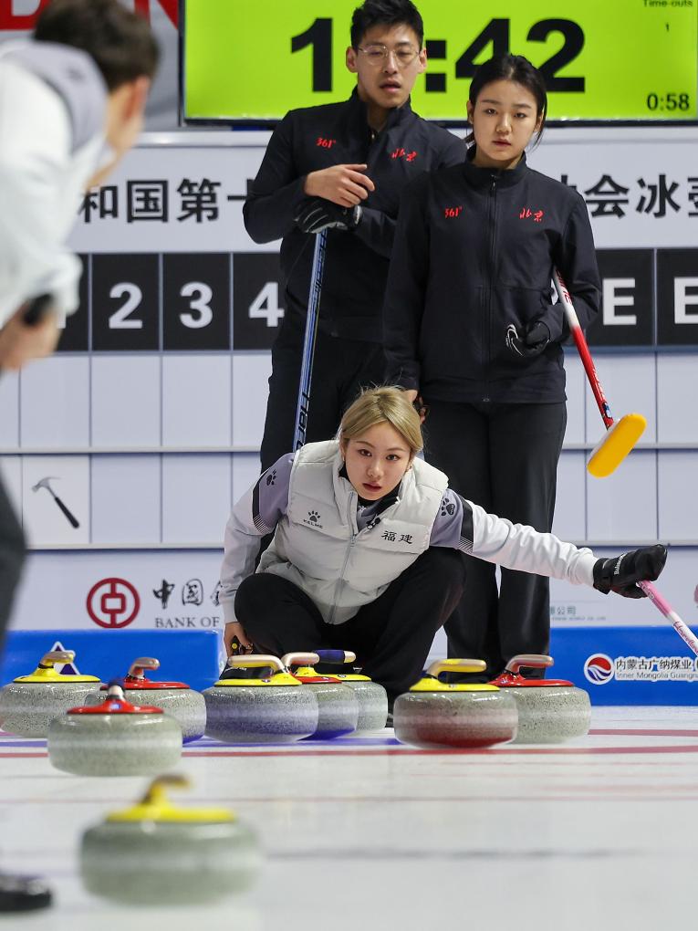 新華社呼和浩特2月19日電(記者趙澤輝、戴錦镕、劉藝淳)19日,在第十四屆全國(guó)冬季運(yùn)動(dòng)會(huì)冰壺(公開組)混雙半決賽中,黑龍江隊(duì)以10:2大勝吉林隊(duì),福建隊(duì)則通過加局以8:7險(xiǎn)勝北京隊(duì),挺進(jìn)決賽。