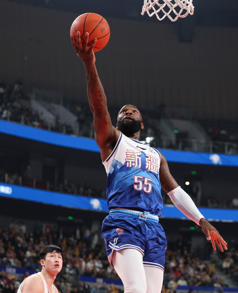 3月10日,新疆隊球員瓊斯在比賽中上籃。新華社記者 胡虎虎 攝