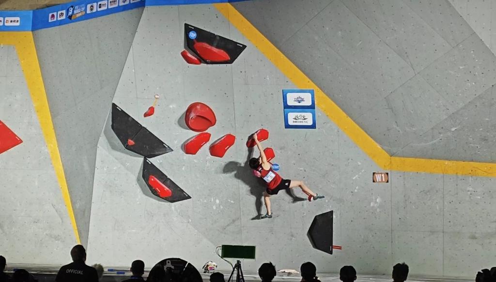 駱知鷺以半決賽第五晉級(jí)決賽。決賽中,她甫一登場(chǎng)便遭遇挑戰(zhàn),首條線路未能完攀,排名僅列第五。但在第二、三條線路中,她均一次嘗試即到頂,排名也躍升至第三。