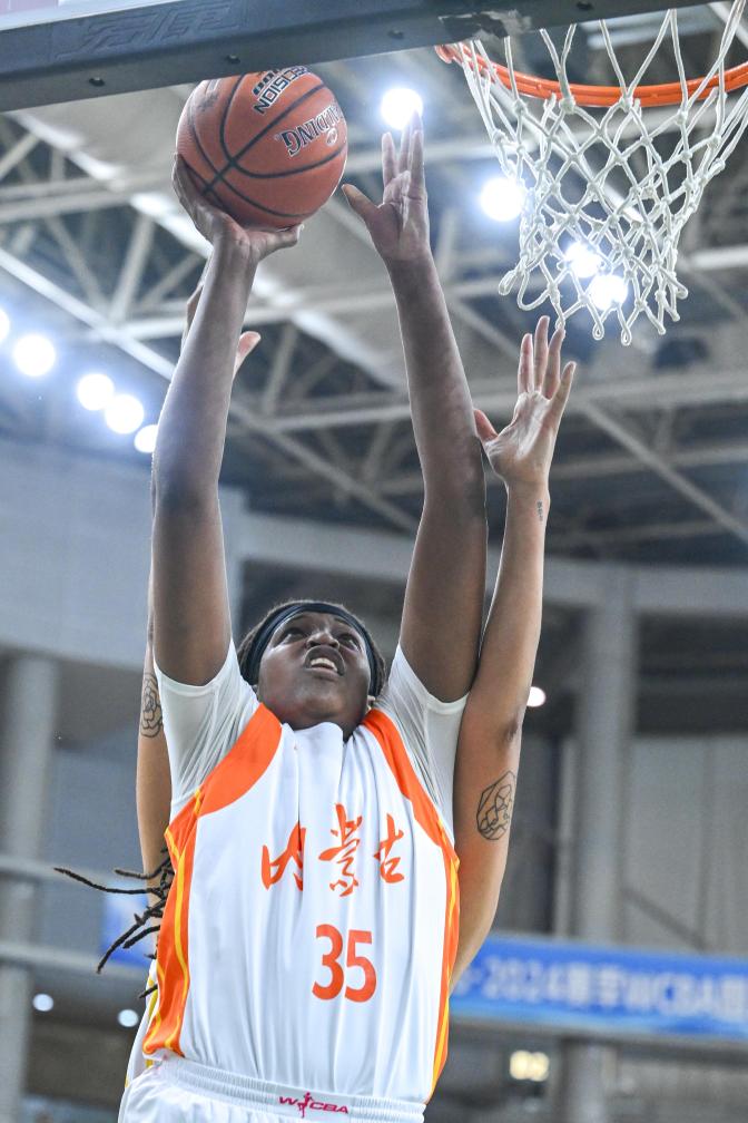 4月11日,內(nèi)蒙古隊球員瓊斯在比賽中上籃。新華社記者 連振 攝
