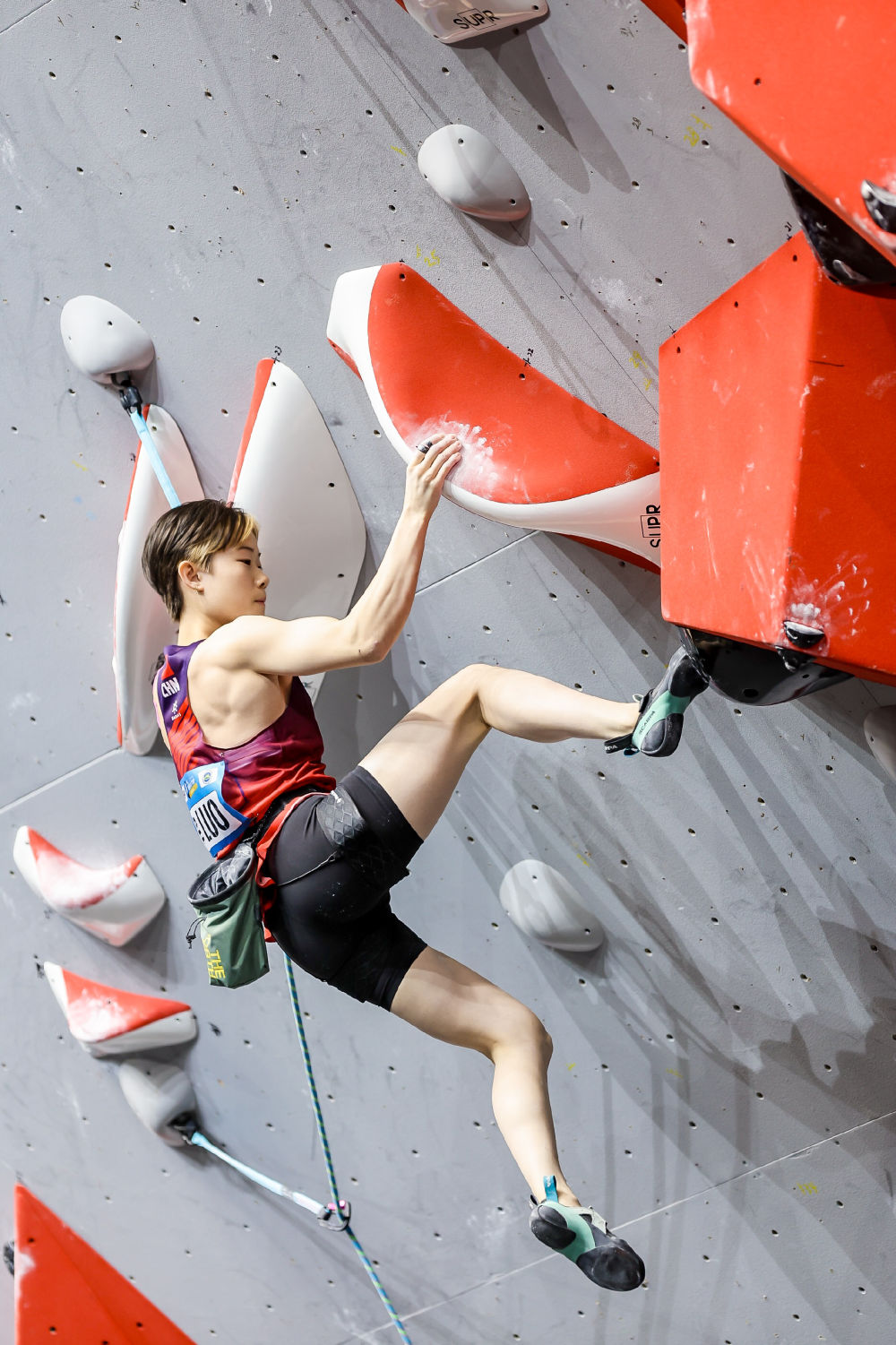 在男子難度項目決賽中沒有一名選手成功到頂,選手表現(xiàn)極為接近。英國選手托比·羅伯茨和日本選手本間大成都拿到了36+的成績,但羅伯茨因在半決賽排名靠前獲得冠軍,另一名日本選手安樂宙斗獲得銅牌。