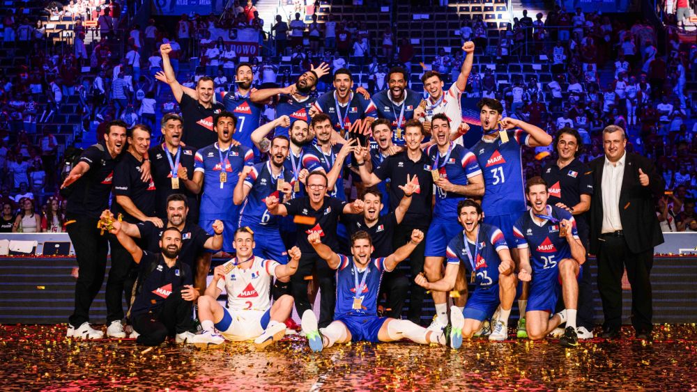 6月30日,法國隊(duì)在慶祝奪冠。圖片來自國際排聯(lián)官網(wǎng)。