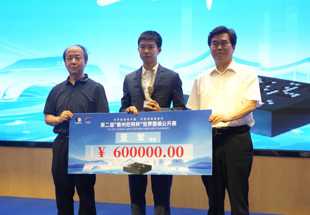 中國圍棋協(xié)會(huì)主席常昊等為參賽棋手頒獎(jiǎng)。本次比賽冠軍獎(jiǎng)金為180萬元人民幣,亞軍獎(jiǎng)金為60萬元人民幣。