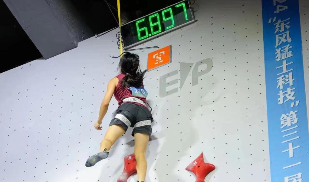 蒙世雪在女子半決賽中與周婭菲遭遇,后者在最后時刻失誤,蒙世雪爬出6秒82的個人最好成績晉級。決賽對陣隊友牟玉菊,她爬出6秒89摘金。