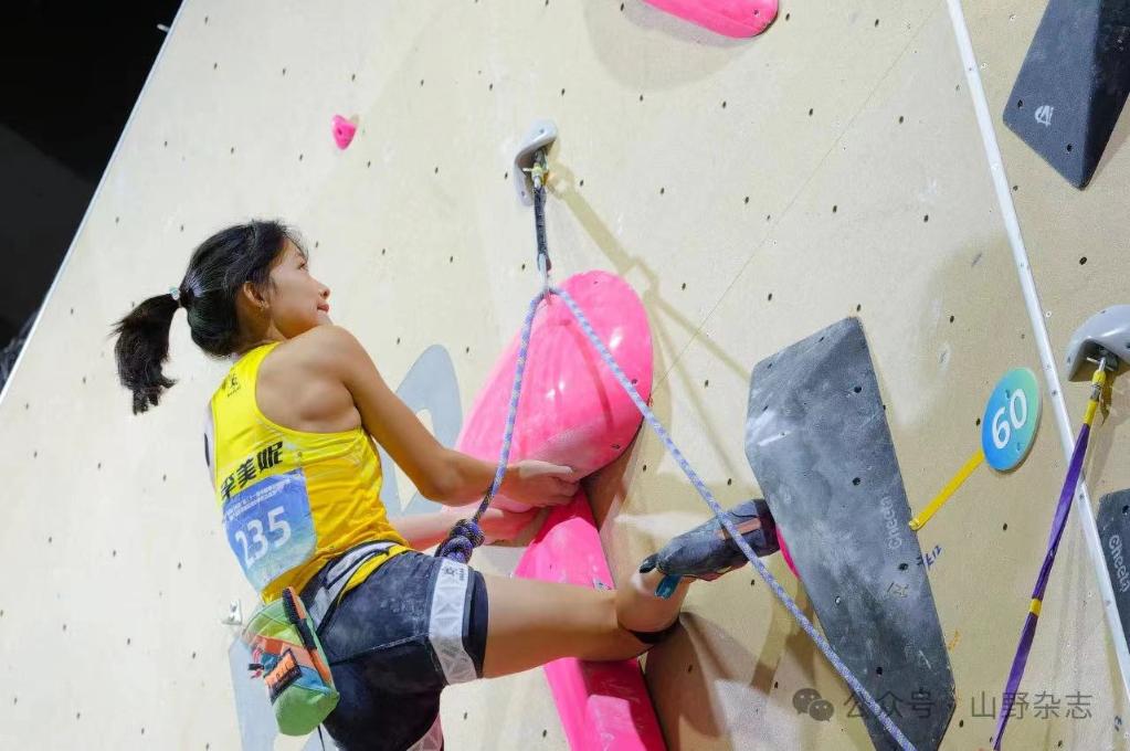 攀巖兩項全能項目中,選手需比拼攀石和難度攀巖,然后進(jìn)行綜合排名。巴黎奧運會選手潘愚非、張悅彤和駱知鷺均未參加此次比賽。