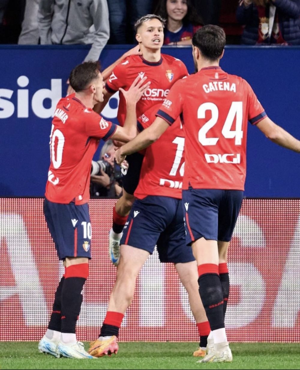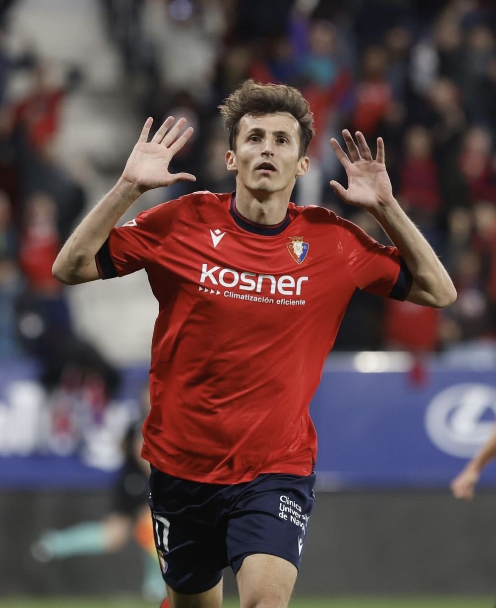 奧薩蘇納隊(duì)前鋒布迪米爾慶祝進(jìn)球。圖片來(lái)自西甲聯(lián)賽官方社交媒體賬號(hào)