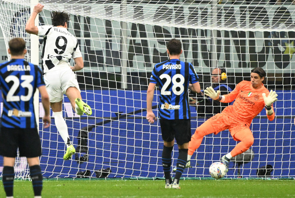 國際米蘭當(dāng)日開局不久便先拔頭籌,第15分鐘,圖拉姆禁區(qū)內(nèi)被踢倒造點,澤林斯基主罰命中。不過“藍黑軍團”的領(lǐng)先優(yōu)勢并未持續(xù)太久,第19分鐘,麥肯尼接卡瓦爾挑傳,門前為弗拉霍維奇送上橫傳助攻,后者輕松破門;第26分鐘,“老婦人”實現(xiàn)逆轉(zhuǎn),小將孔塞桑助攻維阿打進一球。