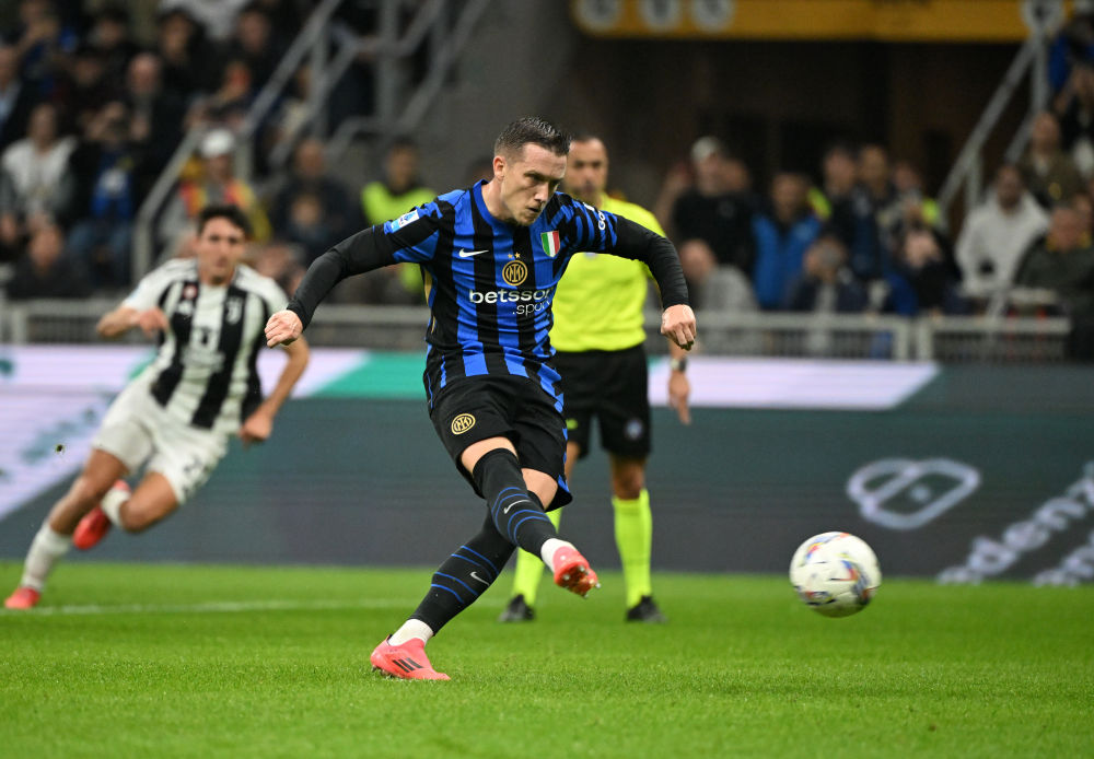 此后國米加強進攻,第35分鐘,姆希塔良與圖拉姆撞墻配合,突破對方防線后,由前者射門得分。3分鐘后,鄧弗里斯再為國米造點,澤林斯基再度主罰命中,國米以3:2領(lǐng)先上半時。