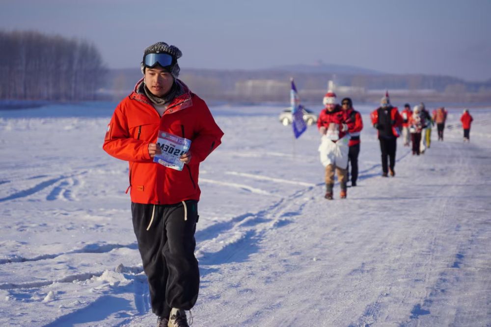 身穿速干衣、抓絨外套,頭戴帽子口罩,腳踩用于防滑的冰爪,不少跑友“全副武裝”,以抵擋戶外嚴寒。“我每個月至少參加兩場馬拉松比賽,但這是第一次參加冰上的,很有新鮮感。這里和我們那邊的溫差能達到近60攝氏度。沿途風(fēng)景很遼闊,讓人心情愉悅?!睆V州游客劉俊逸說,本次比賽賽事保障很到位,在冰面跑步也讓人安全感滿滿。