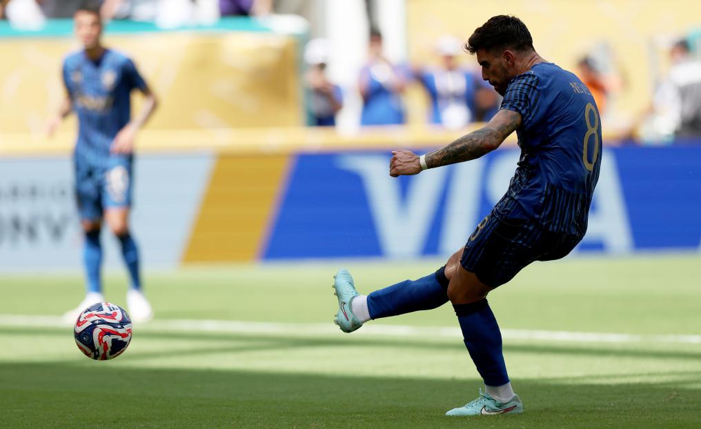 不過(guò)“白衣軍團(tuán)”的領(lǐng)先優(yōu)勢(shì)并未保持太久,第41分鐘,皇馬中后衛(wèi)阿森西奧禁區(qū)內(nèi)拉人犯規(guī),被判罰點(diǎn)球,魯本·內(nèi)維斯主罰為利雅得新月扳平比分。
