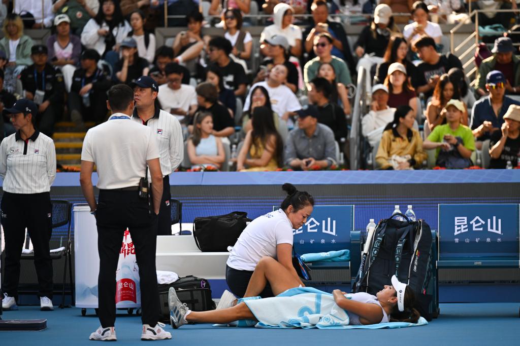進(jìn)入第三盤(pán),諾斯科娃先聲奪人,很快建立3:0的領(lǐng)先優(yōu)勢(shì)。局間休息時(shí),醫(yī)務(wù)人員上場(chǎng)與鄭欽文交流。短暫溝通后,鄭欽文選擇退賽,比賽就此結(jié)束。