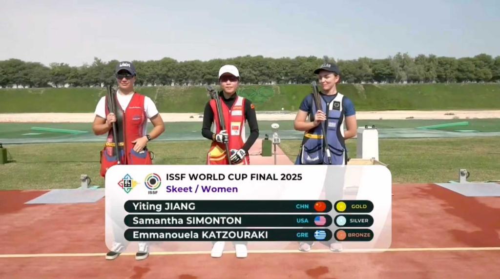 新華社多哈12月8日電 2025年國際射聯(lián)世界杯總決賽8日在多哈收官,中國選手江伊婷在女子雙向飛碟決賽中彈無虛發(fā),以36靶全中的成績奪冠。中國隊(duì)最終以4金2銀3銅位居獎牌榜榜首。