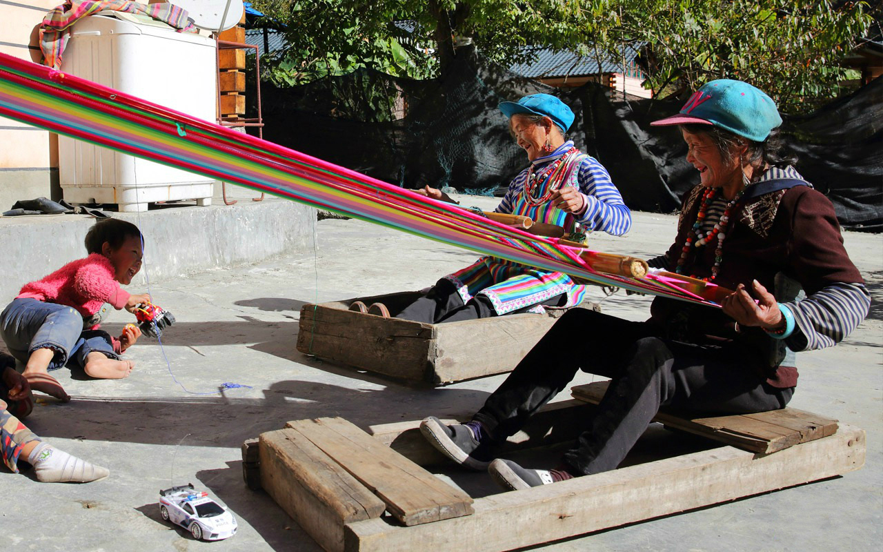 △獨(dú)龍族紋面女在織當(dāng)?shù)靥赜械莫?dú)龍?zhí)骸?/span> 2018年,獨(dú)龍江鄉(xiāng)6個(gè)行政村整體脫貧,獨(dú)龍族實(shí)現(xiàn)整族脫貧,基礎(chǔ)設(shè)施、特色產(chǎn)業(yè)、社會事業(yè)等都發(fā)生了巨大變化。貢山縣干部群眾再次給習(xí)近平寫信匯報(bào)脫貧成績,習(xí)近平得知后非常高興,向他們表示“衷心的祝賀”,并勉勵(lì)鄉(xiāng)親們?yōu)檫^上更加幸福美好的生活繼續(xù)團(tuán)結(jié)奮斗。