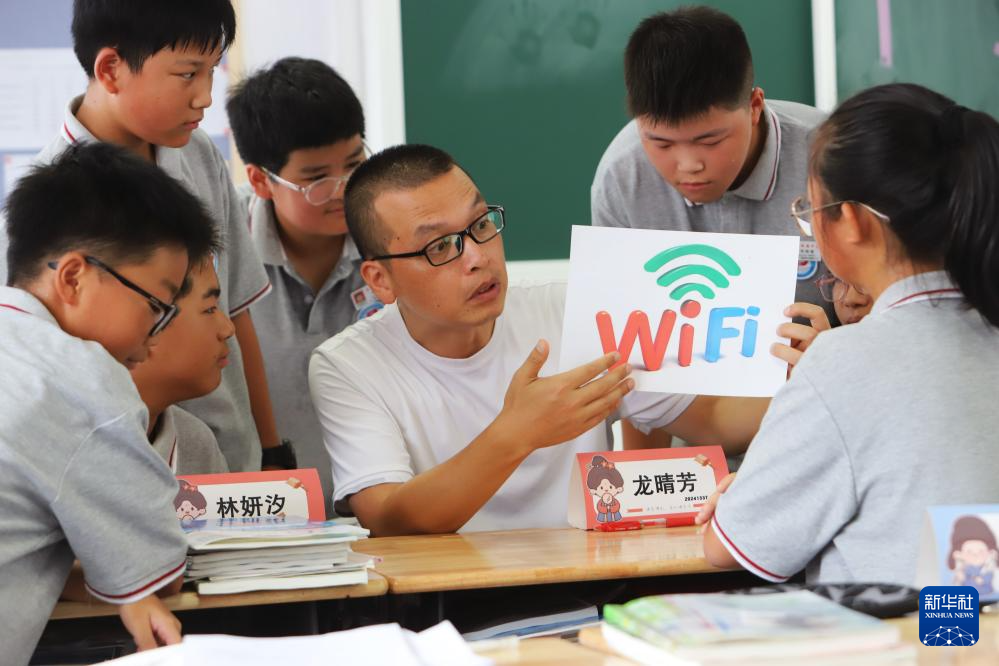 9月11日,浙江省臺(tái)州市路橋區(qū)蓬街中學(xué)老師為學(xué)生講解網(wǎng)絡(luò)安全知識。(新華社發(fā) 蔣友青 攝)
