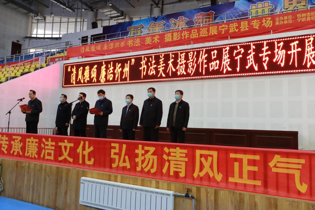 筆墨書(shū)廉潔,丹青揚(yáng)正氣。11月27日,由忻州市紀(jì)委監(jiān)委主辦、寧武縣紀(jì)委監(jiān)委承辦的“清風(fēng)雅頌·廉潔忻州”書(shū)法美術(shù)攝影作品巡展寧武縣專場(chǎng)在縣體育館隆重開(kāi)展。寧武縣委書(shū)記任寧虎在開(kāi)展儀式上講話并宣布開(kāi)展??h委常委、縣紀(jì)委書(shū)記、監(jiān)委主任尹志剛主持開(kāi)展儀式??h四套班子領(lǐng)導(dǎo)和其他縣處級(jí)領(lǐng)導(dǎo),各縣直單位、各鄉(xiāng)(鎮(zhèn))的主要領(lǐng)導(dǎo),全縣紀(jì)檢監(jiān)察干部,共計(jì)180余人參加儀式。