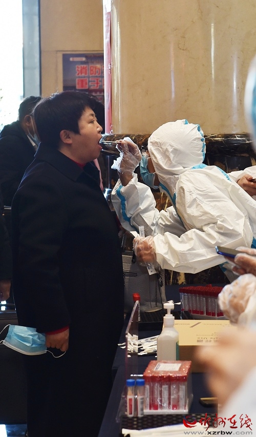 據(jù)了解,今年大會實行嚴格的閉環(huán)管理模式,參會代表持本人身份證、疫情防控承諾書報到,報到時進行集中核酸檢測,隨后進入房間等待核酸檢測結(jié)果。在現(xiàn)場,市人民醫(yī)院檢驗科醫(yī)師陳鵬為前來參會的市人大代表劉明祥做完核酸檢測后說:“為了保障大會順利召開,市人民醫(yī)院核酸采集小組早上7時便在報到處布置好了核酸采集點,等候代表們到來?!?/p>