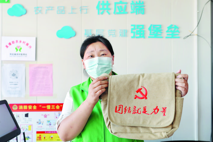 6月1日,河北省平山縣西柏坡鎮(zhèn)北莊村電商直播助農(nóng)惠農(nóng)展銷基地的工作人員在整理特色商品。