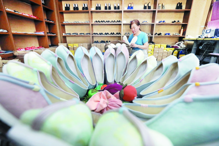 6月1日,河北省平山縣西柏坡鎮(zhèn)北莊村一家便利店的工作人員在展示特色商品。