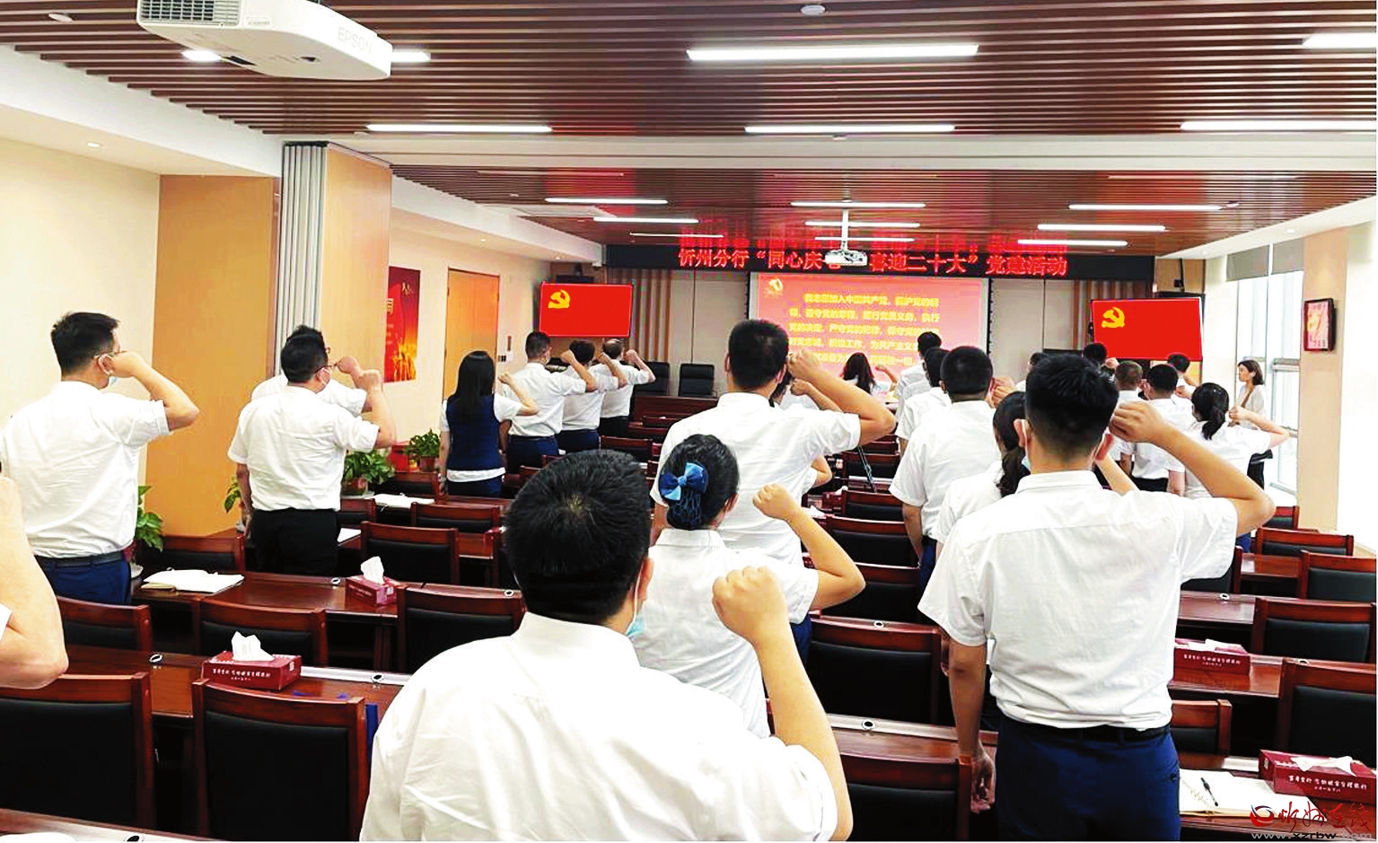 為進一步增強黨組織凝聚力和戰(zhàn)斗力,激發(fā)黨員愛黨愛國愛行熱情,引導全行黨員堅定信心、勇毅前行,6月30日晚,交通銀行忻州分行組織開展“同心慶七一 喜迎二十大”黨委書記講黨課活動。圖為該行黨委書記李王芳帶領全體黨員重溫入黨誓詞。 (蔚一凡 攝)