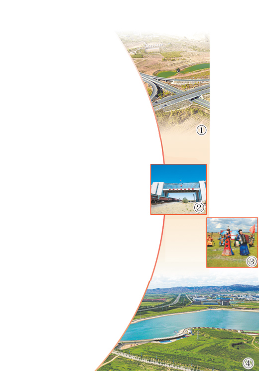 圖②:“二連號”中蒙寬軌集裝箱專列駛出內(nèi)蒙古自治區(qū)二連浩特國門,開往蒙古國烏蘭巴托。郭鵬杰攝(人民視覺)