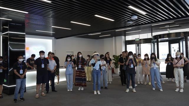 記者團(tuán)在百度Apollo Park參觀(guān)采訪(fǎng)。記者楊惠生攝