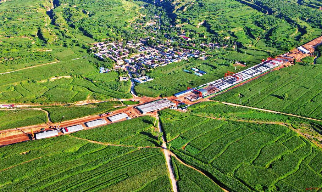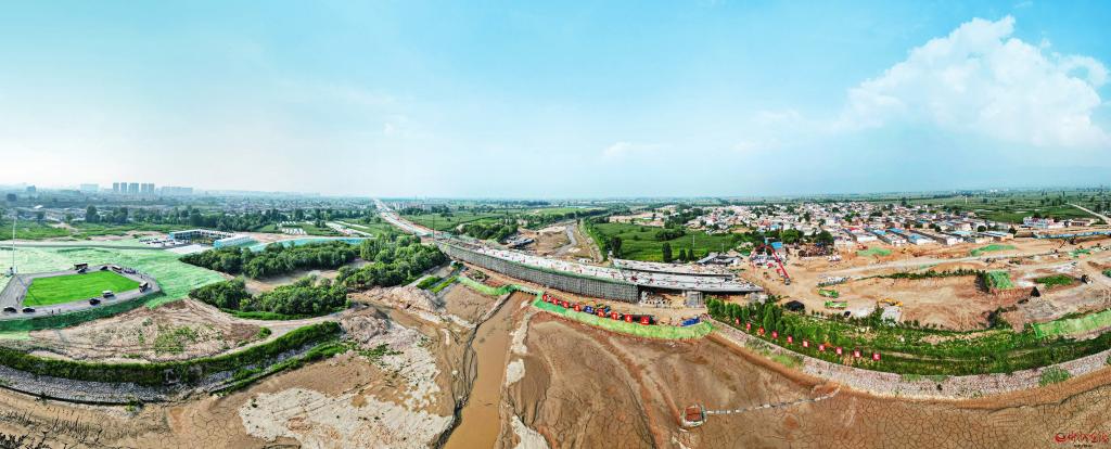 鳥(niǎo)瞰太忻大道忻州段施工現(xiàn)場(chǎng)。 張存良 攝