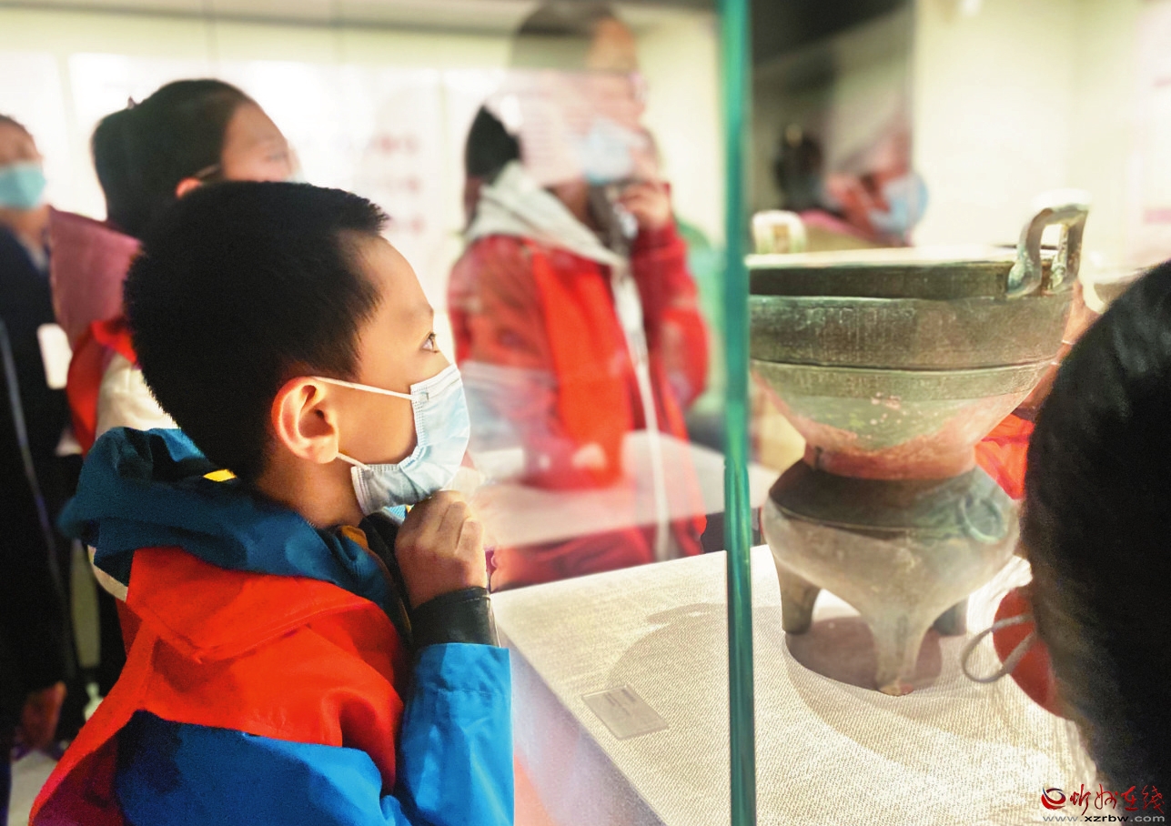 小朋友在剛建成開(kāi)放的市博物館參觀展出的文物。 宮清華攝