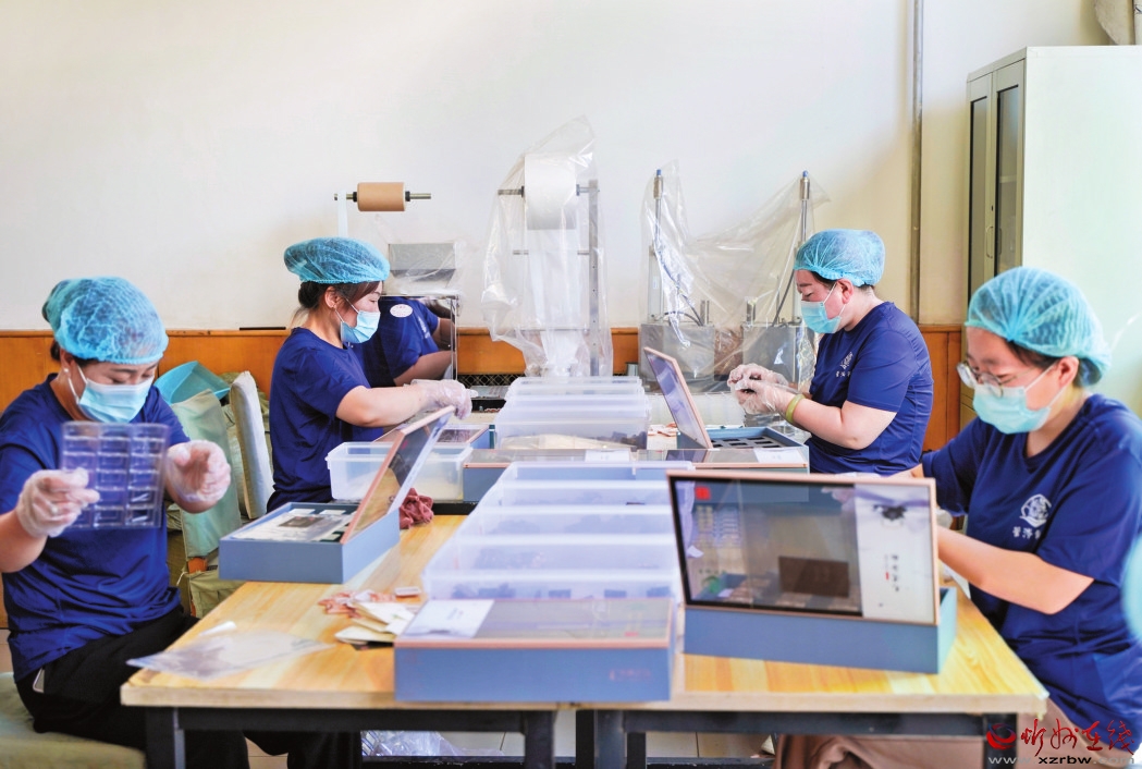 走進山西一品緣茶葉有限責任公司制茶車間,一盤盤正在晾曬的毛建草,散發(fā)出陣陣香氣。它們在這里,經(jīng)采用傳統(tǒng)手工工藝與現(xiàn)代工藝技術(shù),通過清洗、蒸煮、揉捻、發(fā)酵、炒制、烘干、篩分、色選補火、壓制、包裝等工序,搖身一變成為品相精美、口感鮮醇的毛建茶。