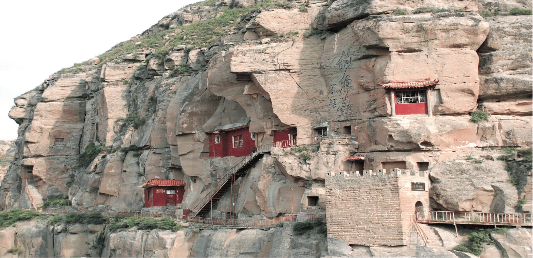 故城石窟位于保德縣楊家灣鎮(zhèn)故城村西1500米、黃河?xùn)|岸石崖上。清順治二年(1645),由陳奇瑜構(gòu)筑,歷時(shí)三年建成,建有呂仙祠等建筑。故城石窟坐東向西,占地面積約600平方米。向南石砌的古堡式門洞,門洞上方匾書“釣魚臺”,頂部砌有女兒墻垛口。山壁上有大小不等的10孔人工開鑿的石窟。