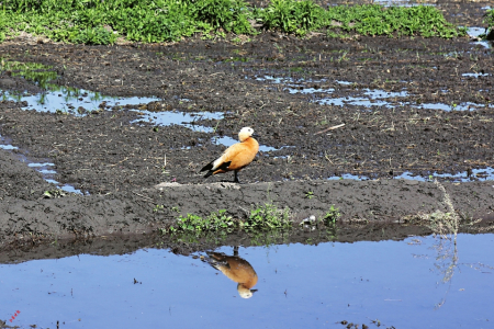 隨著生態(tài)環(huán)境向好、水位上升和近期氣溫回暖,多年未出現(xiàn)的中華赤麻鴨也現(xiàn)身赤橋村,時(shí)而在水塘邊覓食,時(shí)而在稻田里嬉戲。遠(yuǎn)處鳥群凌空盤旋,鳥鳴聲不絕于耳,旋耕機(jī)在稻田來(lái)回穿梭,映著青綠山色,構(gòu)成一幅生機(jī)盎然的和美鄉(xiāng)村畫卷。