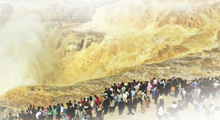 “壺口”的稱謂,最早見于《尚書·禹貢》中,如“既載壺口,治梁及岐”“壺口、雷首,至于太岳”,都與傳說(shuō)中大禹治水的路線與策略有關(guān),壺口是大禹治水的始發(fā)之地。黃河壺口瀑布旅游區(qū)是國(guó)家5A級(jí)旅游景區(qū),是中國(guó)第二大瀑布,全世界最大的黃色瀑布。站在壺口觀景臺(tái)往上看,只見洶涌的黃河水簇?fù)碇?、吶喊著撲到眼前,其?shì)如千軍萬(wàn)馬,漫山遍野般涌來(lái),到了壺口,那一排排的巨浪在翻著水花馳騁飛奔中,突然墜入深坑,發(fā)出了震耳的嘶鳴聲,濺起了漫天水霧,再簇?fù)碇枷蜻h(yuǎn)方……而此時(shí)的你,只會(huì)感覺到大自然的偉岸和自己的渺小。