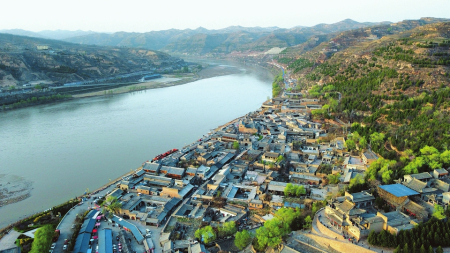 逝者如斯乎,不舍晝夜。悠悠的黃河水在晉陜峽谷間奔流不息,亙古不變。晉陜大峽谷中段,黃河與湫水河交匯處下游,平緩溫情的黃河水瞬間變得波濤洶涌,咆哮聲響徹山谷,400米寬的河道急速轉(zhuǎn)彎縮窄百米內(nèi),這就是著名的大同磧。大同磧上游與湫水河交匯處,面向黃河,北靠臥虎山,形成了地理上半圓形的磧口古鎮(zhèn)。因特殊的地理位置,磧口漸漸形成水旱碼頭,成為晉商們轉(zhuǎn)運(yùn)物資的西大門(mén),古代商貿(mào)活動(dòng)因此而興。