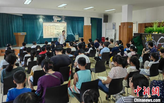 寧波圖書館“共讀Moment·閱經(jīng)典”活動(dòng)現(xiàn)場(chǎng)幾乎座無虛席,當(dāng)?shù)刂Z文教師北辰為孩子們講解柳宗元的《江雪》。 中新網(wǎng)記者 應(yīng)妮 攝